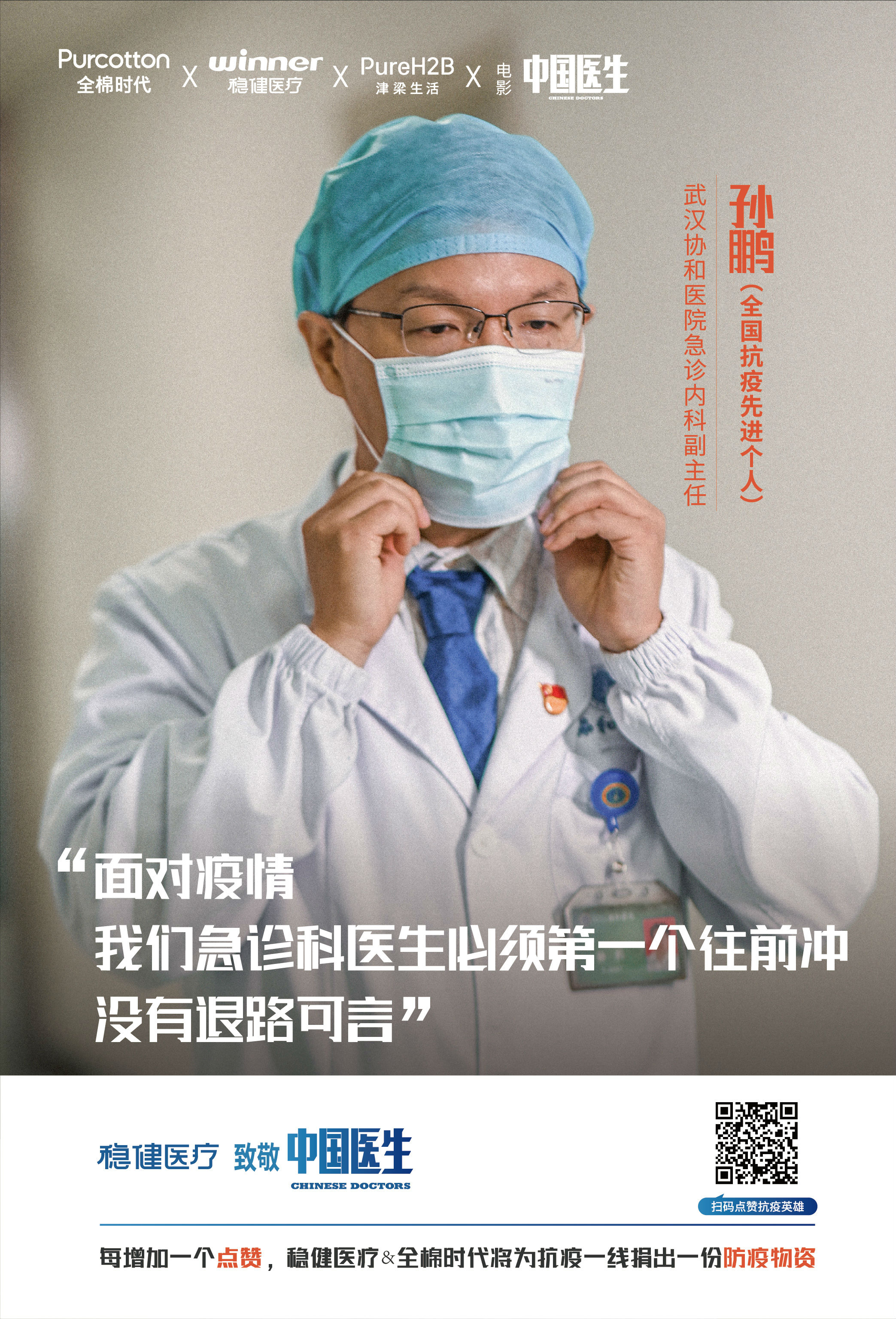为了向这群可爱可敬的人表达谢意,稳健医疗联合电影《中国医生》推出了“点赞中国医生”的公益活动,简简单单却又诚意满满,承诺每增加一个点赞,稳健医疗&全棉时代将为抗疫一线捐赠一份防疫物资,用实际行动去致敬中国医生。